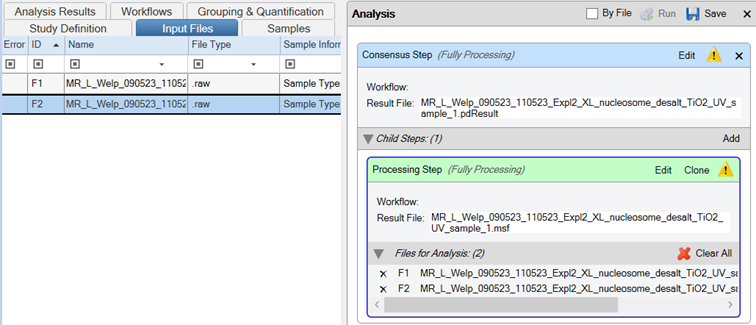 In the analysis window you can set up ‘processing’ and ‘consensus’ workflows for NuXL